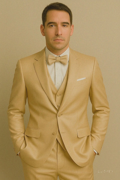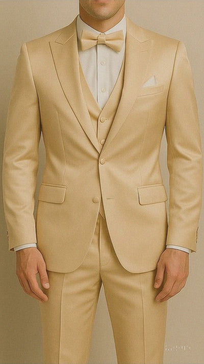 Champagne Suit – Light Gold Color Shiny Sateen Wedding Tuxedo Suit