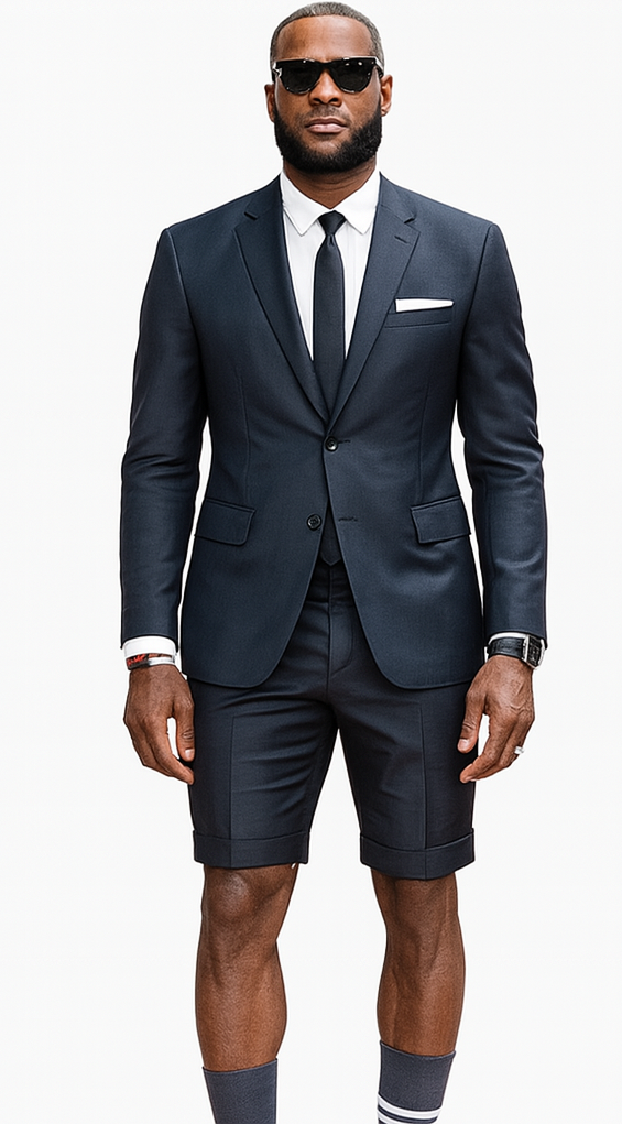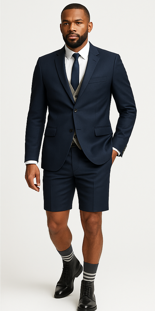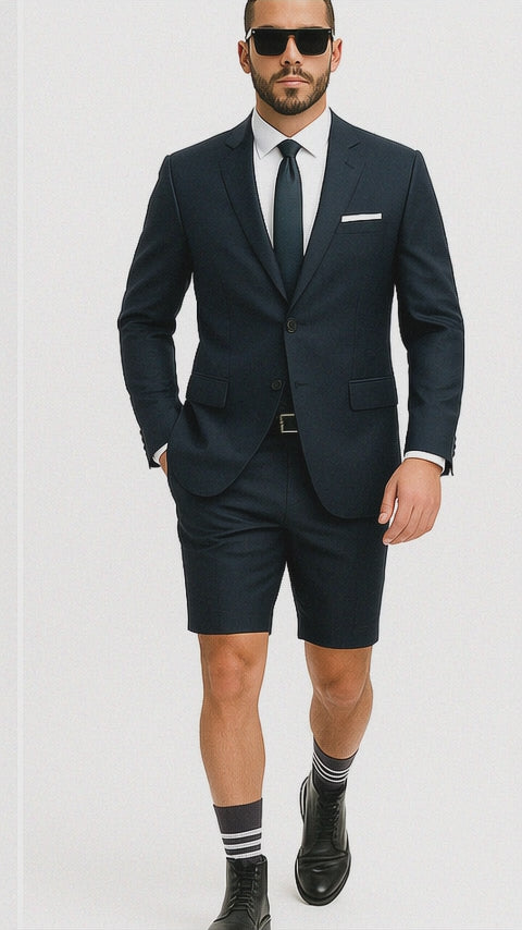 Cotton Fabric Charcoal Gray Suit - Mens Suits With Shorts - Summer Suit