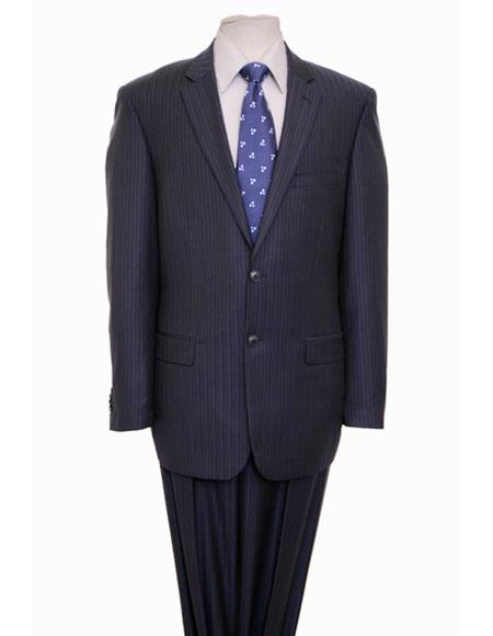 Designer Affordable Inexpensive Men's Striped Pattern Dark Navy Suit with Flat Front Pant