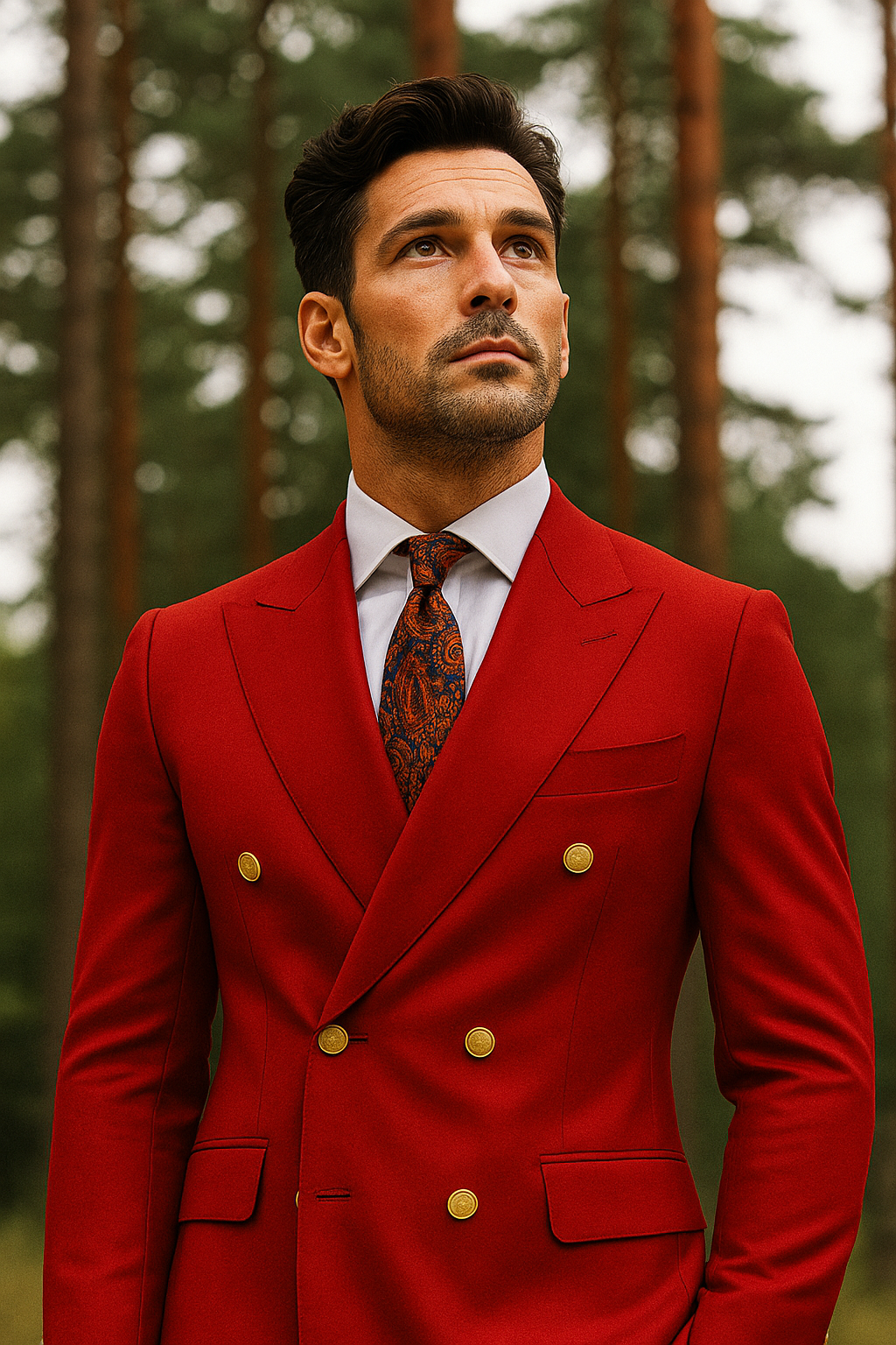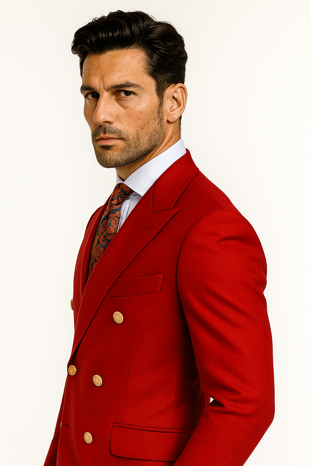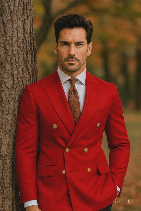 Double Breasted Blazer with Gold Buttons - Red Sport Coat