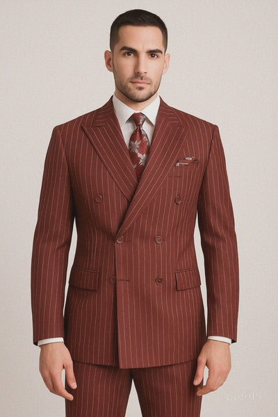 Double Breasted Suit - Maroon Suit - Side Vented - Modern Fit