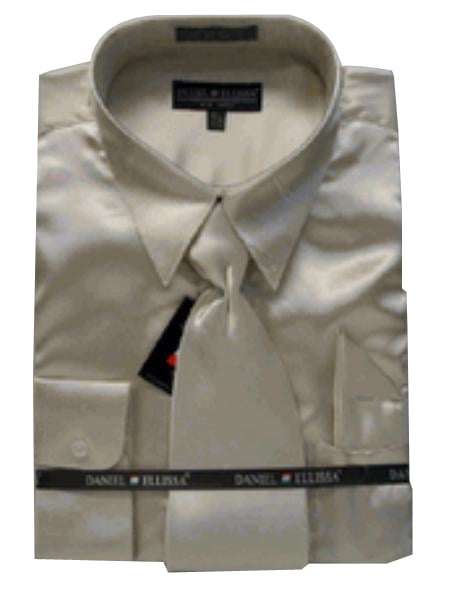 Fashion Cheap Priced Sale Men's New Tan ~ Beige Satin Dress Shirt Tie Combinations Set Men's Dress Shirt