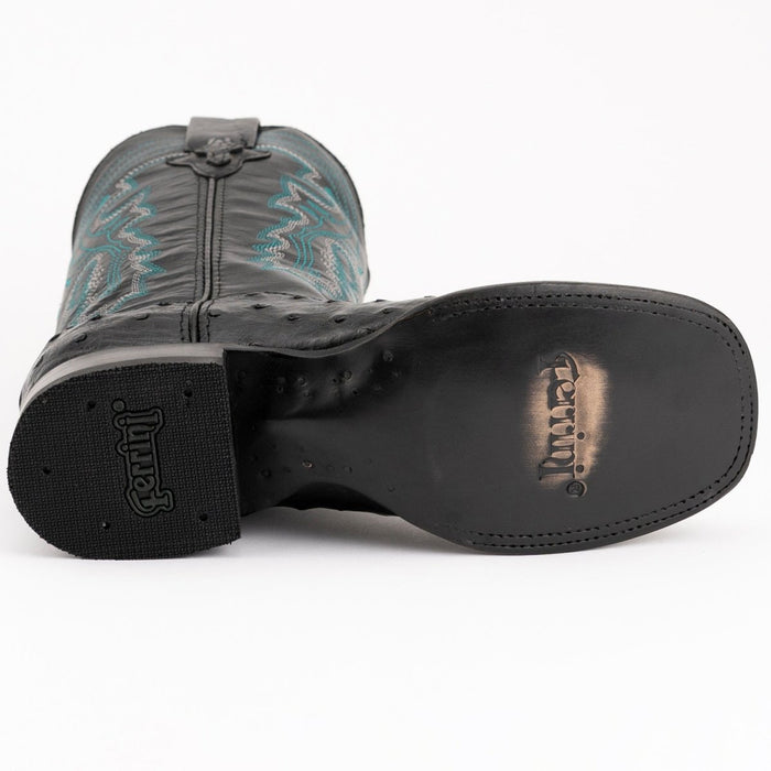 Ferrini Men's Colt Full Quill Ostrich Square Toe Boots Handcrafted - Black