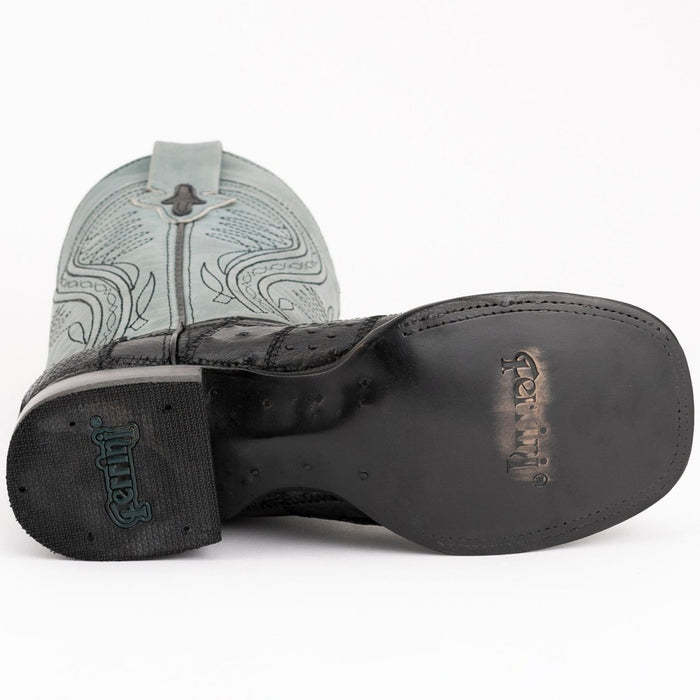 Ferrini Men's Pinto Patch Ostrich Square Toe Boots Handcrafted - Kango Brown