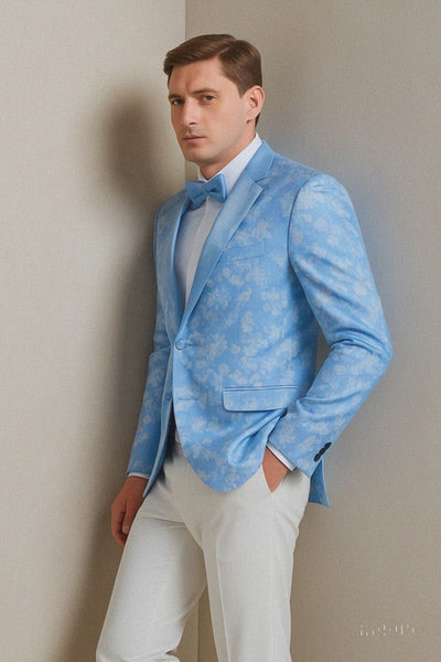 Floral Sportcoat - Big and Tall Tuxedo Dinner Jakcet - 2023 Fancy Sky Blue Blazer