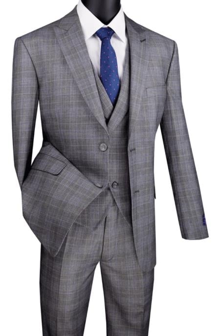 Gray Plaid Suit - Vested Suit - 3 Piece Suits - Peak Lapel Suits - Windowpane Suit - 2 Button