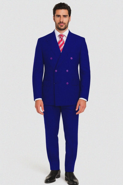 High Quality Royal Blue Double Breasted Suit Blazer with Peak Lapels – Sophistication and Style