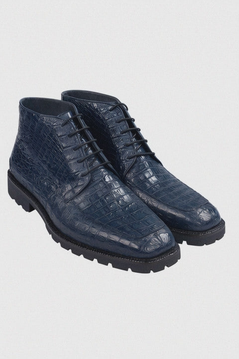 The High Top Gator Skin Shoe in Navy Blue is the ultimate expression of luxury, craftsmanship, and timeless style. Designed for the modern gentleman who values both bold fashion and superior comfort, these shoes redefine sophistication with their exotic appeal. Handcrafted from genuine gator skin, the deep navy blue tone exudes elegance and exclusivity, making this footwear a premium choice for those who want to stand out without saying a word.