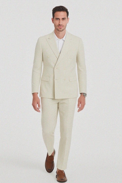 Ivory Double Breasted Linen Suit - Cream Color Summer Suit