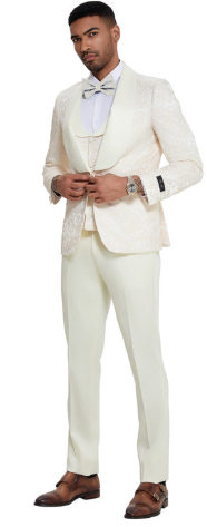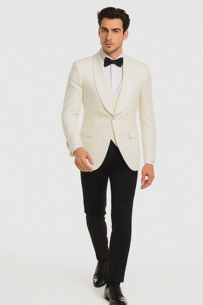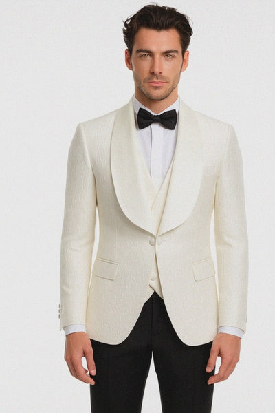 Perfect for grooms who want a refined alternative to the classic black tuxedo. The ivory shade photographs beautifully and complements a variety of wedding color schemes. -