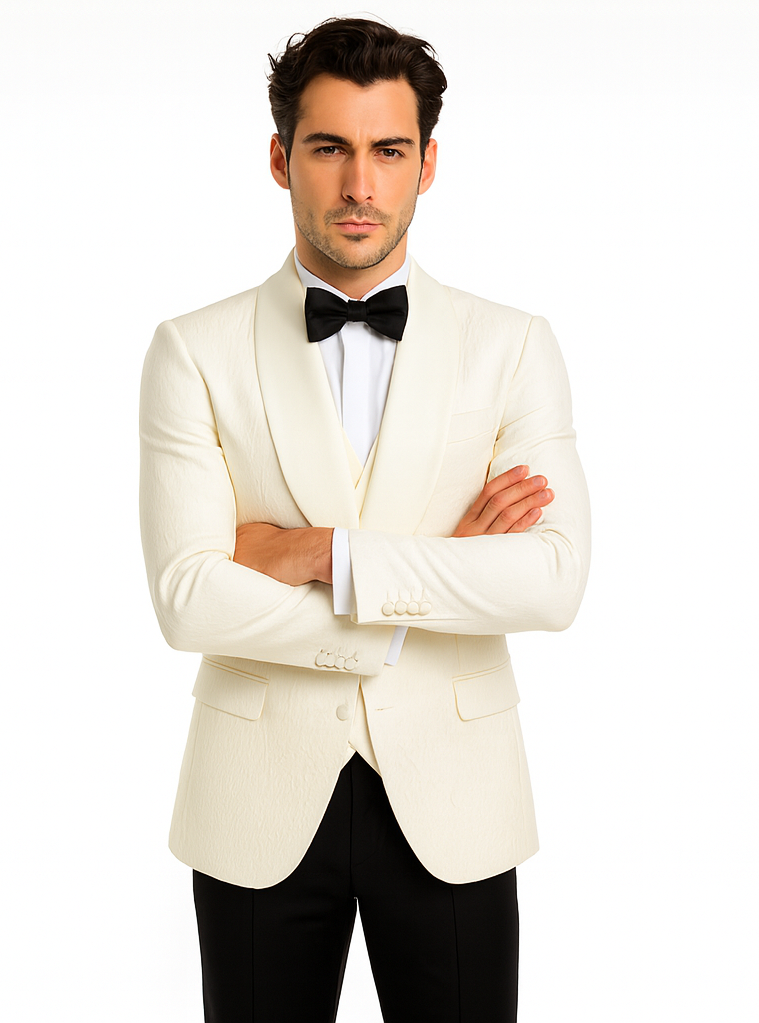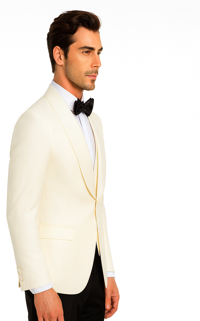 The Ivory Tuxedo Dinner Jacket with Wide Velvet Lapels is perfect for grooms, prom-goers, and stylish men attending galas or red-carpet events. It blends classic elegance with modern flair, ensuring you look confident and distinguished.