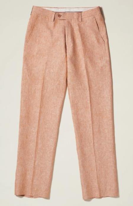 Linen Flat Front Pants — Camel Colors