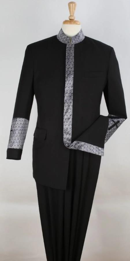 Mandarin Collar Tuxedo - Mandarin Tuxedo - No Collar Suit - Black Suit