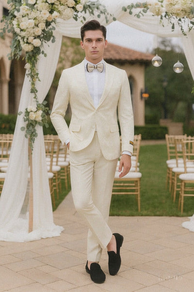 Men’s Ivory Floral Embroidered Tuxedo Jacket – Elegant Wedding and Party Blazer in Cream Color With Ivory Pants