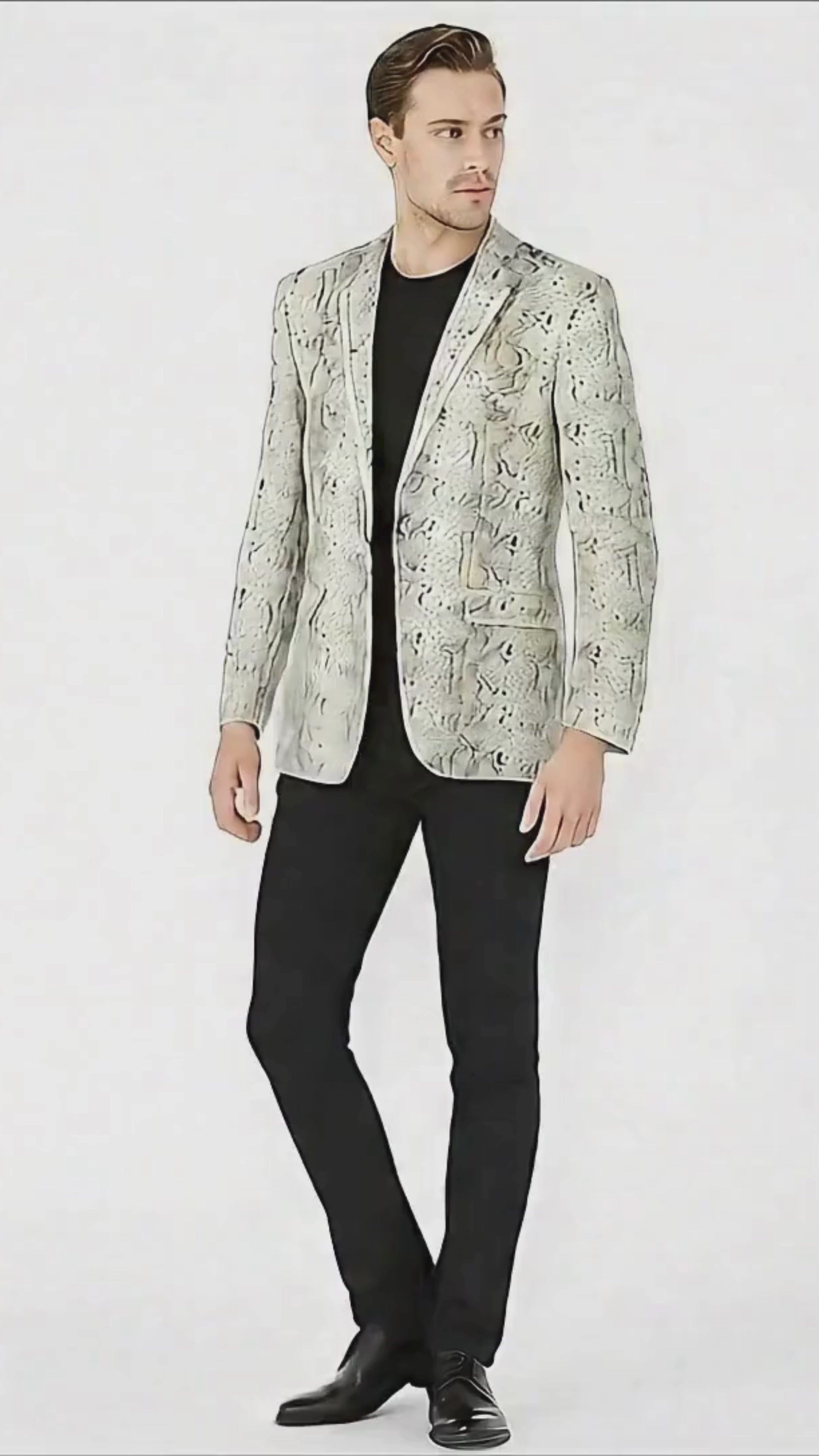 Step into confidence with this White Snake Print Blazer – the perfect choice for men who want to combine luxury, edge, and modern style.