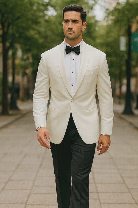 Men's Wool Feel Snow White Shawl Collar Dinner Jacket