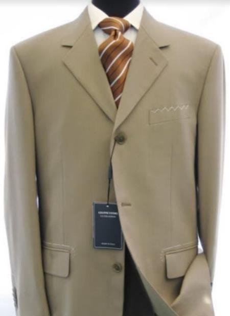 Mens 3 Button Blazer - Three Button Dark Tan ~ Beige Sport Coat - Side Vented - Wool Blazer