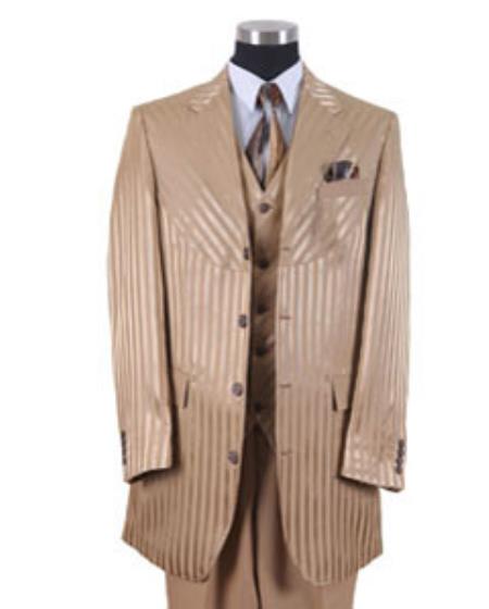 Men's 3 Button Fashion Cheap Priced Business Suits Clearance Sale Edged Jacket w/ Pants Vest Set Tan