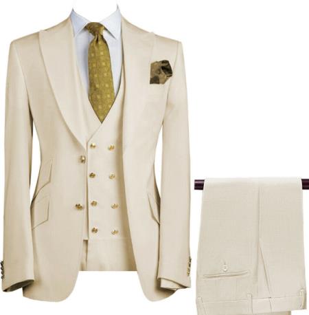 Mens 3-Piece Suit Notch Lapel Beige Suit