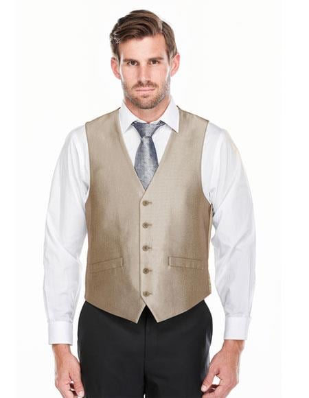 Men's 5 Button Shark-skin Classic Fit Tan Vest