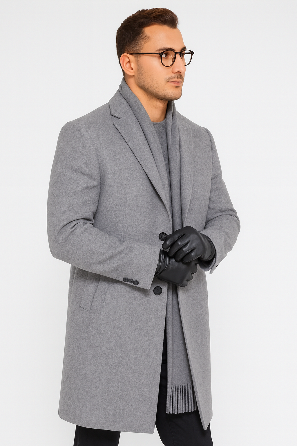 Crafted from high-quality wool-blend fabric, this overcoat provides excellent insulation against cold weather while maintaining a lightweight and comfortable feel. The long design extends past the knee, offering maximum coverage and protection from chilly winds. Its refined light grey / silver shade adds a versatile and stylish element to men’s wardrobes, pairing effortlessly with business suits, formal attire, or even casual winter outfits.