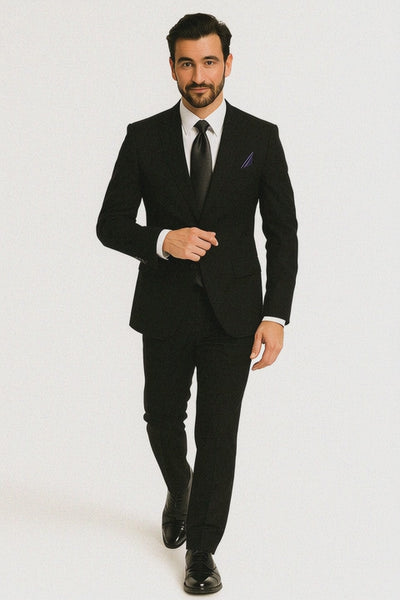 men's Black 2 Button Italian Design Suit - 2 Button design