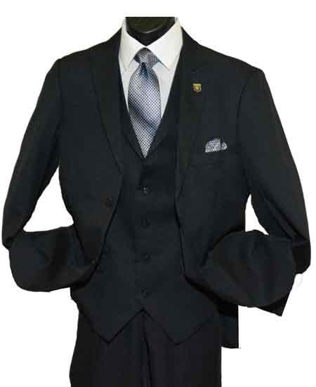 Men's Black 2 Button Side Vent Peak Lapel V-Neck Vested Suit
