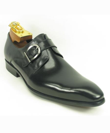 Men's Black Leather Side Buckle Style Slip On Fashionable Carrucci Black Dress Shoe