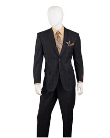 Men's Black Two Buttons Plaid ~ Window Pane Cheap Priced Business Suits Clearance Sale Pleated Pants Regular Cut