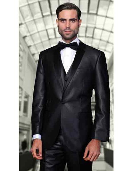 Men's Black Two Toned Vested 2 Buttons Suit With Black Lapel Italian Tuxedo Looking
