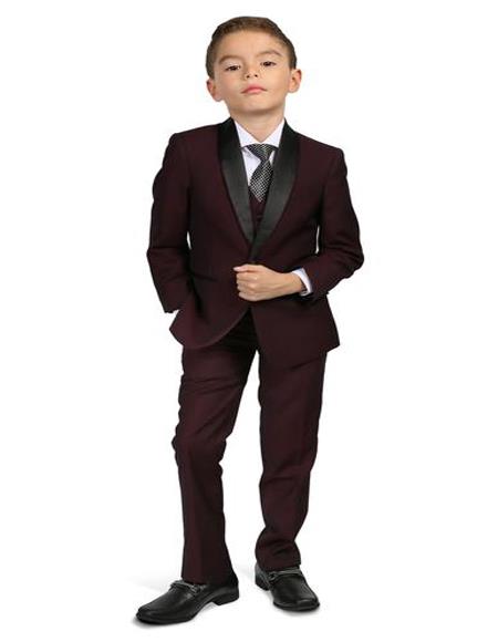 Men's Boys Shawl Lapel Burgundy Tuxedo Set Perfect for wedding attire outfits - Toddler Suit