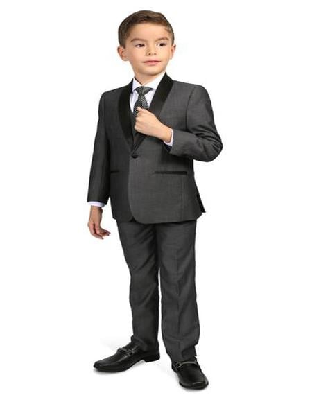 Men's Boys Shawl Lapel Grey Tuxedo Set Perfect for wedding attire outfits - Toddler Suit