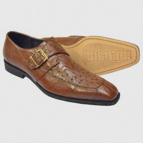 Men's Brown Genuine Ostrich Monk Strap Leather Shoes - Men's Buckle Dress Shoes Mens Ostrich Skin Shoes