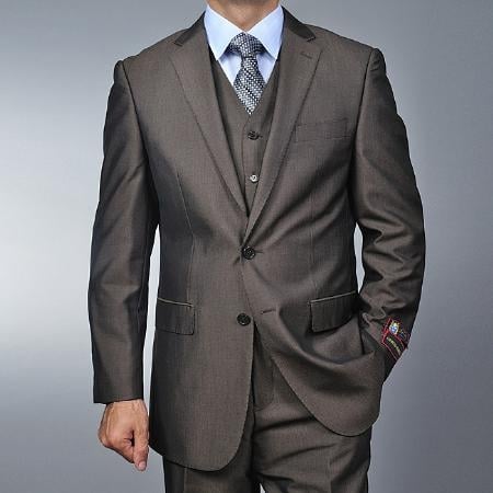 Men's Brown Teakweave 2-button Vested 2 Piece Suits - Two piece Business suits Suit