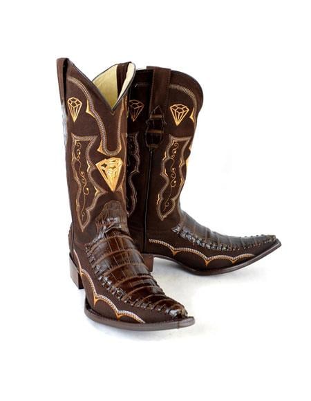 Men's Cafe Bota Vaquera Hombre Piel Coco Panza Imitacion Mexican Cowboy Boot For Men