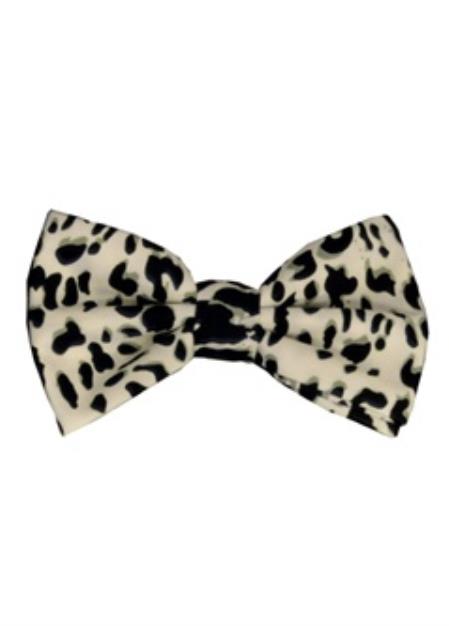 Men's Classic Leopard - Animal Print Design White and Black Bowties-Men's Neck Ties - Mens Dress Tie - Trendy Mens Ties