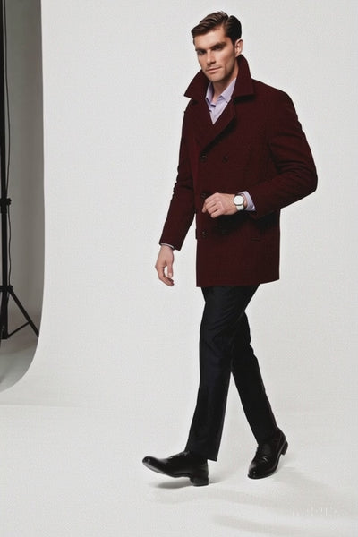 Men's Dark Burgundy Big and Tall Peacoat