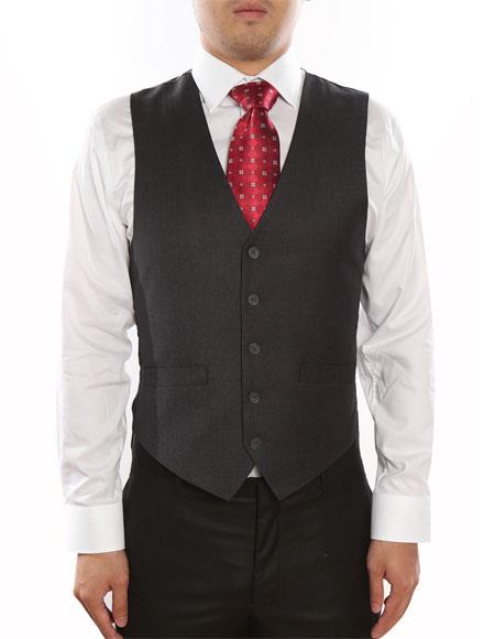 Men's Dark Grey 5 ButtonShark-skin Classic Fit Vest