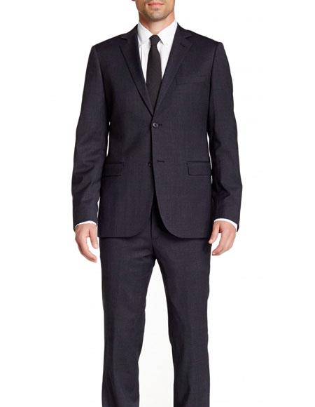 Men's Dark Navy Blue Suit For Men Slim Fit 2 Buttons Wool Pinstriped Suit