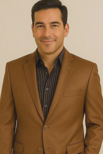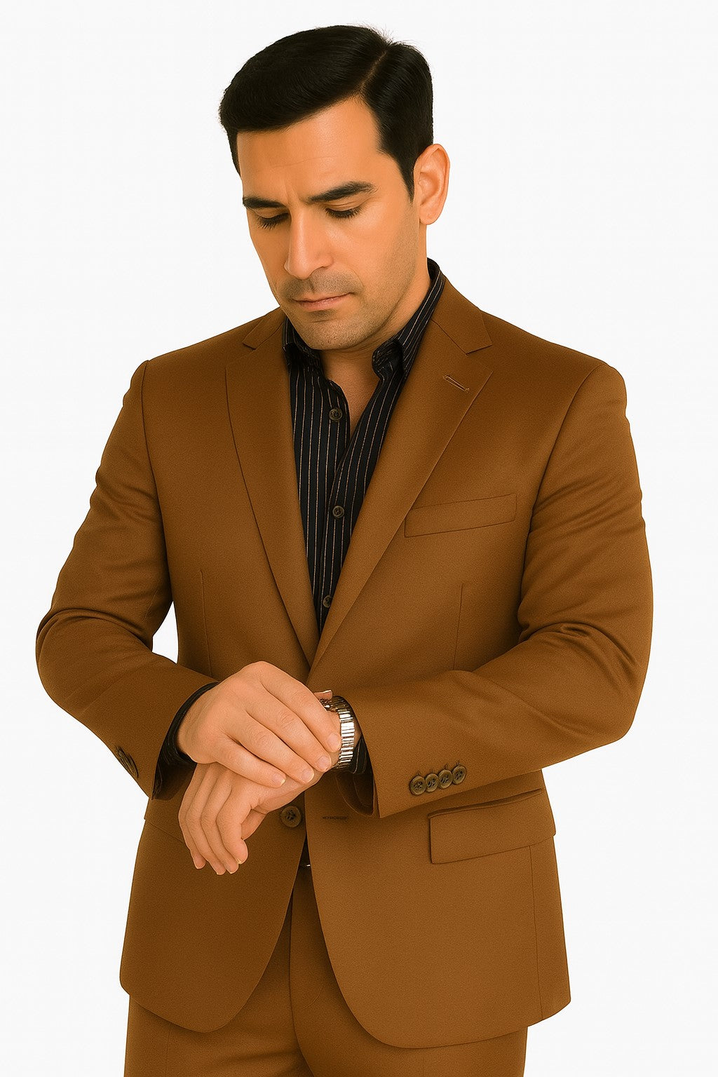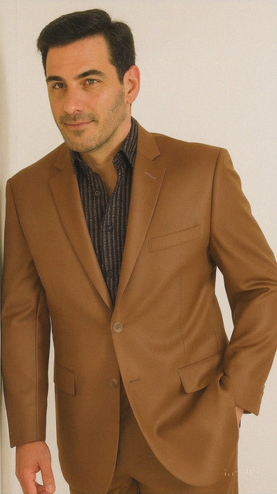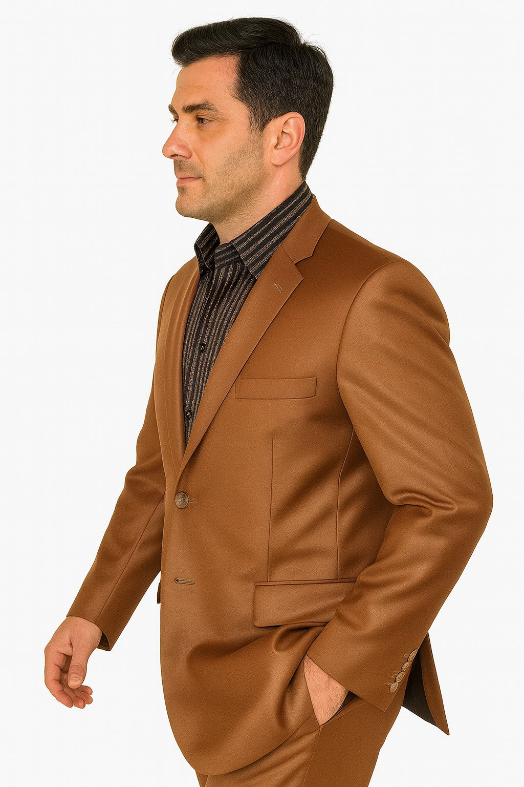 Men’s Designer 2-Button With Sheen Rust ~ Peach Sharkskin Suit