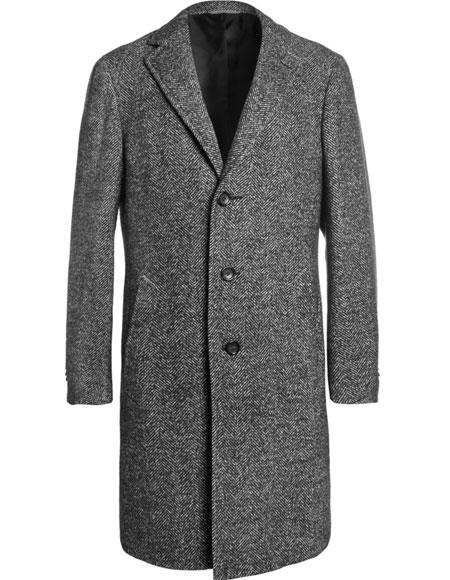 Men's Dress Coat Tweed ~ Herringbone 3 Button Grey Long Men's Dress Topcoat - Winter coat Full Length By Overcoat