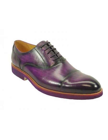 Men's Fashionable Carrucci Purple Genuine Leather Oxford Shoes