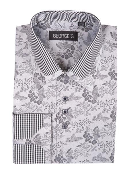 Men's Floral Pattern Black Classic Fit Cotton Blend Standard Cuff Shirt