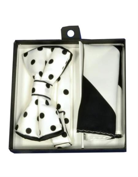 Mens Formal - Wedding Bowtie - Prom White and Black Dot Bowtie