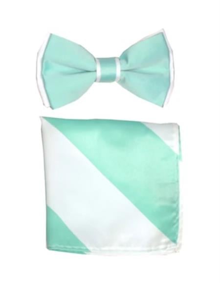 Mens Formal - Wedding Bowtie - Prom Mint Green and White Bowtie