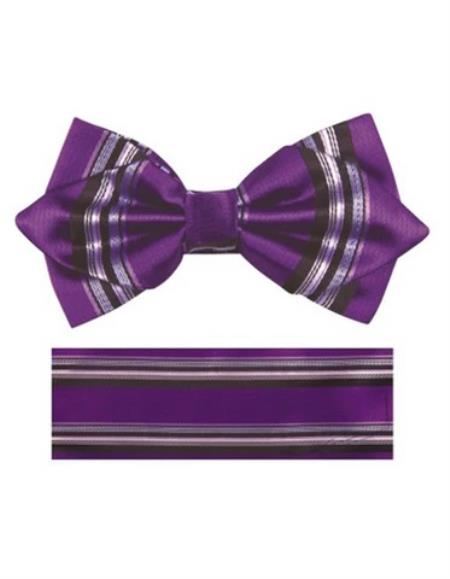Mens Formal - Wedding Bowtie - Prom Purple Stripe Bowtie