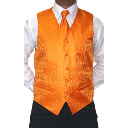 Men's Four-Piece Orange Microfiber Men's Vest Set Also available in Big and Tall Sizes