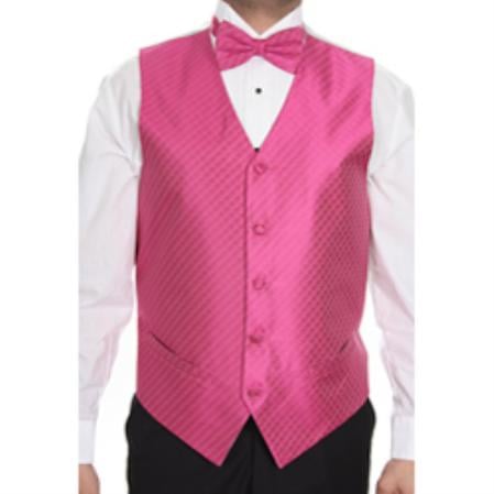 Men's Fuchsia ~ fuschia ~ hot Pink Tuxedo Patterned 4-piece Dress Tuxedo Wedding Vest ~ Waistcoat ~ Waist coat Set Buy 10 of same color Tie For $25 Each - Men's Neck Ties - Mens Dress Tie - Trendy Mens Ties