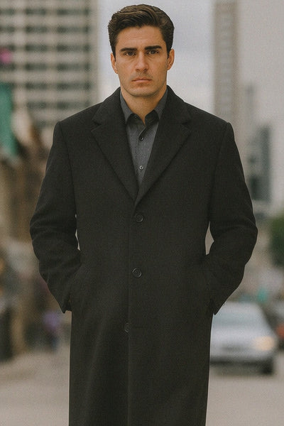The Men's Full Length Dress Topcoat is the ultimate in refined winter style. Crafted from a luxurious wool-cashmere blend, this coat offers premium warmth, sophisticated tailoring, and timeless elegance. Designed to fall below the knee, it creates a powerful silhouette ideal for formal and business wear during the colder months.