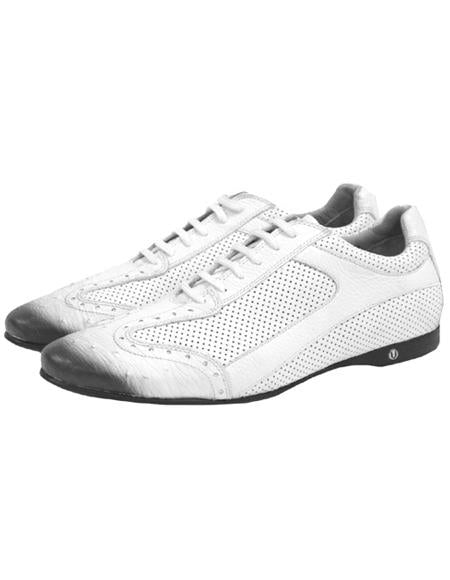 Men's Genuine Ostrich Quill and Calf Leather Faded Tone on Toe Rubber Sole Shoes